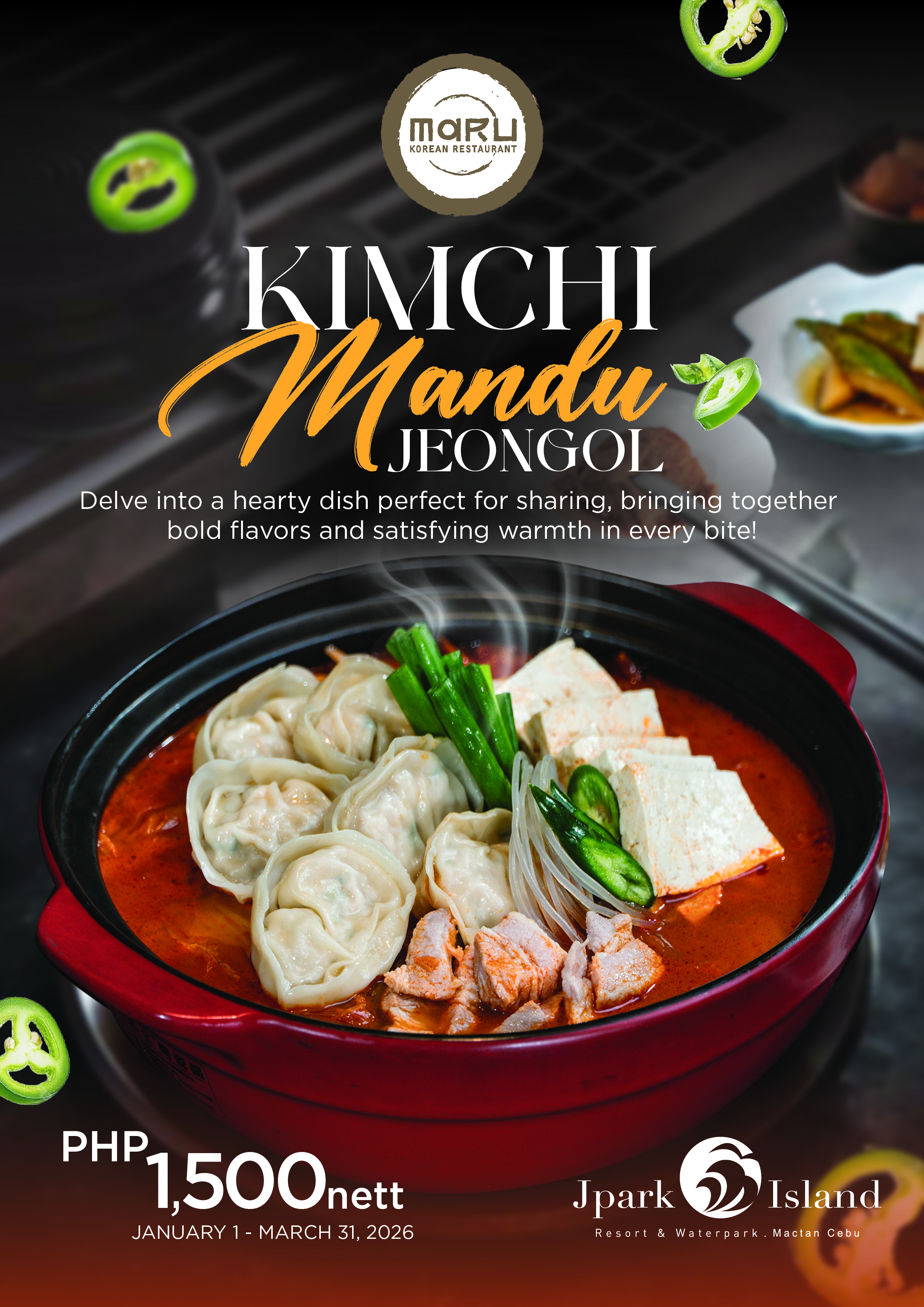 Delve into a heartly dish perfect for sharing, bringing together bold flavors and satisfying warmth in every bite with Mar Korean Restaurant's Kimchi Mandu Jeongol for just Pgp 1,500 net.