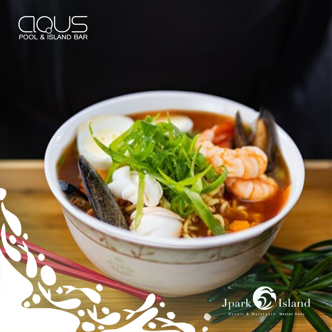 Dive into a bowl of bold and spicy flavors with the ocean's bounty. Perfect for fans of comforting Korean-style noodle soup with a delicious seafood twist at Aqus Pool & Iland Bar's Seafood Ramyun for just Php 360 net.